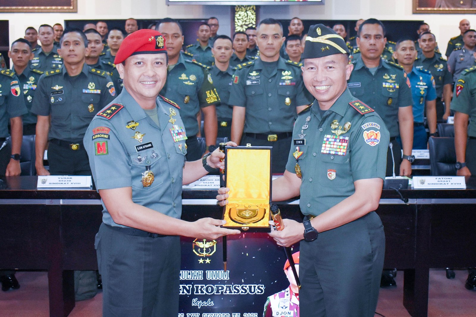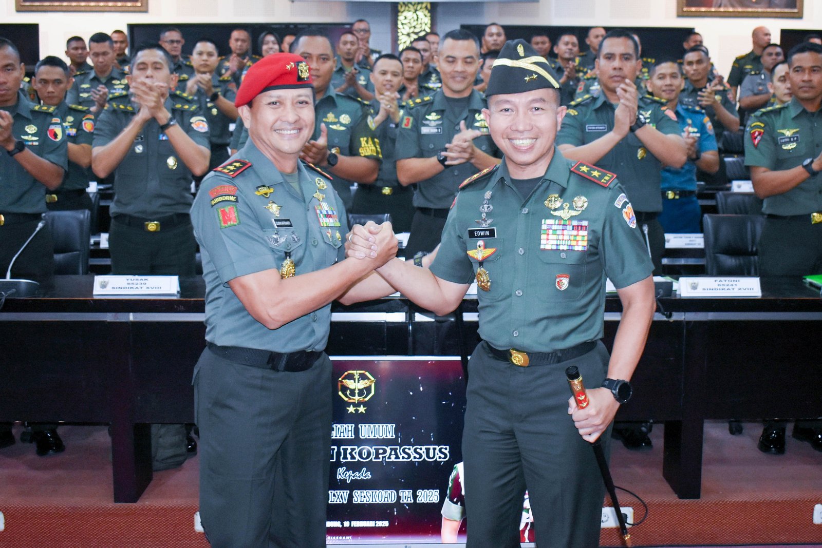 Bandung, 19 Februari 2025 – Komandan Jenderal Komando Pasukan Khusus Mayjen TNI Djon Afriandi, S.IP., MS.DA., memberikan kuliah umum kepada Perwira Siswa Dikreg LXV Seskoad, Kegiatan yang berlangsung di Gd. Jend Gatot Soebroto Seskoad ini bertujuan untuk membekali para Pasis dengan wawasan kepemimpinan yang tangguh dalam menghadapi tantangan tugas di masa depan.